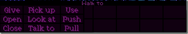 A while ago I put up a post showcasing adventure game GUIs, without really going into much details about them. But if you want to make your own adventure game, one of the first questions is how you want to control it. And that means, deciding how many Verbs there should be. If you ask "old-school" gamers, you will hear a lot of complaints that modern games are "dumbed down", while game designers talk about "streamlining the experience" - both positions have some truth to them, because it is important to differentiate between complexity and depth.