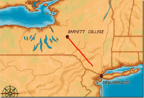 Indy has to travel a bit during the game, and this non-interactive screen simply establishes his current location (Barnett College, which was not stated so far in the game) and signals that you can travel to locations with a red dot.