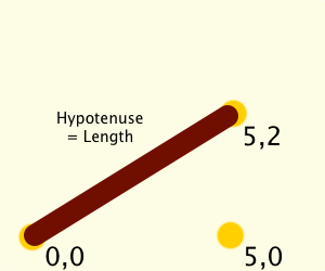 First off, the length of the difference vector is not 7. This was a mistake I made for a long time. Rather, the length of the vector is the hypotenuse of a right triangle with origin 0,0 and points at the X and Y coordinates. Let's just quickly go over the parts of a right triangle (image courtesy of Wikipedia):