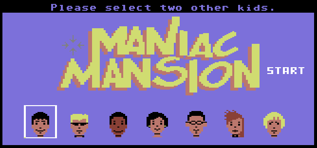 I'm currently looking into Commodore 64 game development again, and one of the interesting questions is "How to display the graphics?" The C64 has a plethora of display modes, and with the use of raster interrupts it is possible to mix the different modes to create crazy tricks. A while back, I asked a question titled "What exactly makes up a screen in a typical C64 game?" and got a good answer, but at the time I didn't really understand it. In order to really understand how a C64 screen is made up, I'm looking at a few games and describe what exactly they do. The first game I'm looking at is Maniac Mansion, undoubtedly one of the most important adventure games ever written (Random fact: I was lucky enough to finally find an original C64 version of it 🙂)